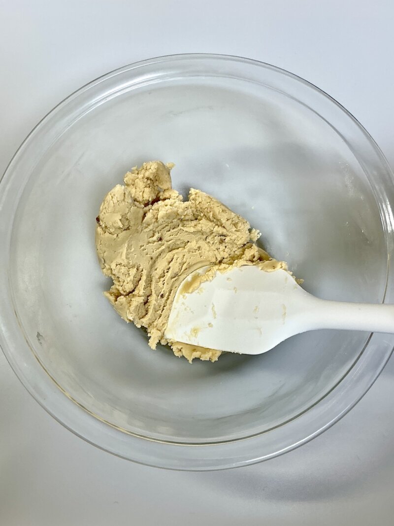 最後にボウルの底にグッと押しつけていくと、ひとまとまりになってきます