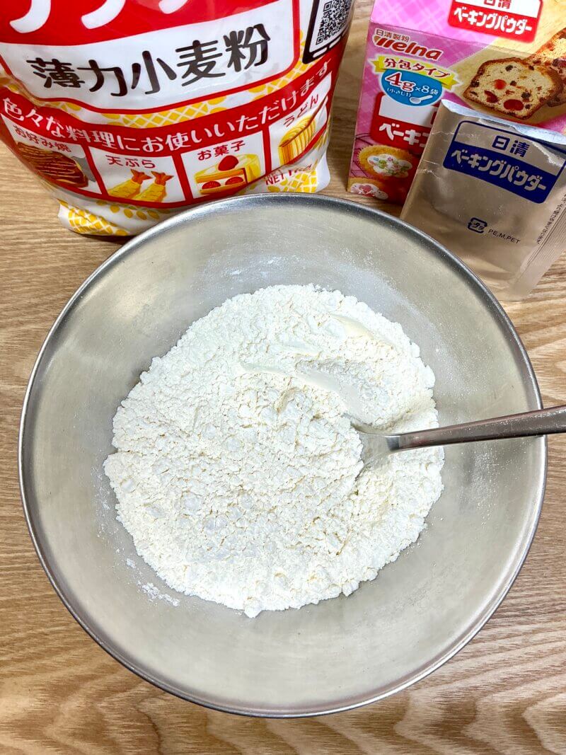 (薄力粉100gとベーキングパウダー4g)