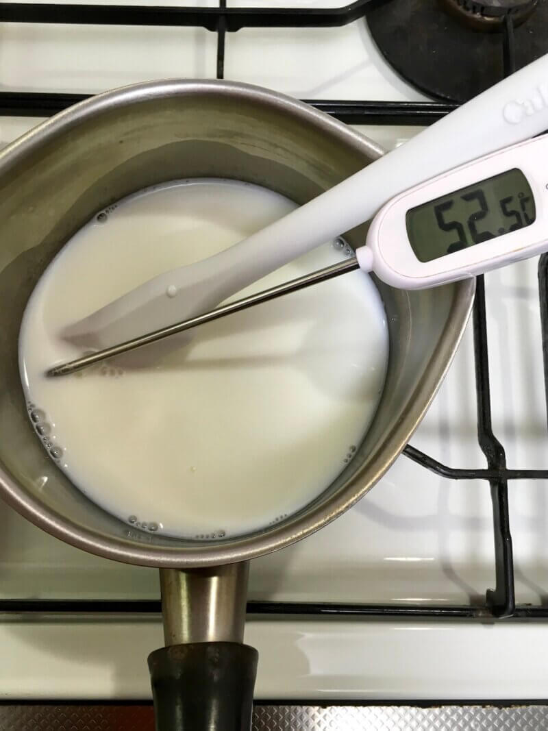 牛乳の量や火加減で変わると思いますが、今回は2分ほど温めました