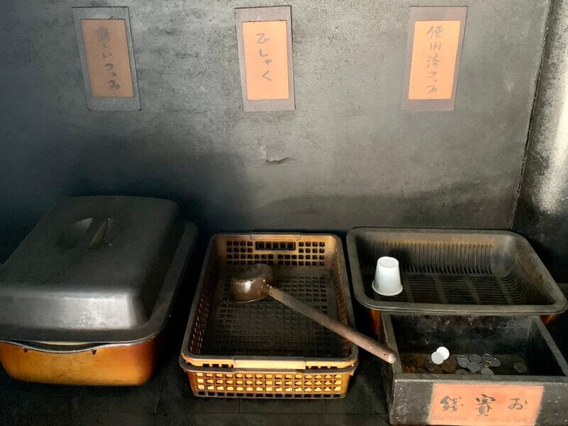 左側には紙コップとひしゃくがあります