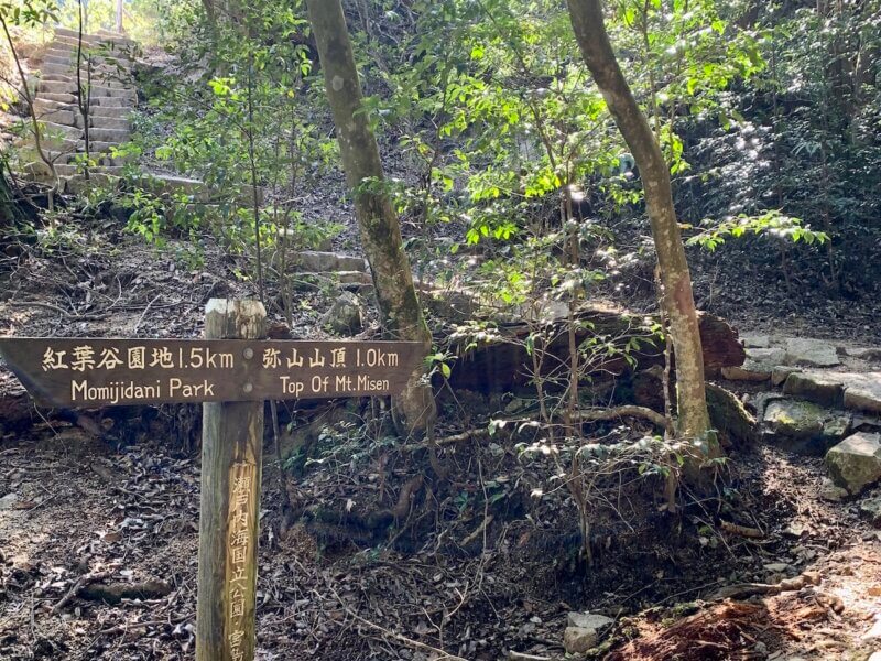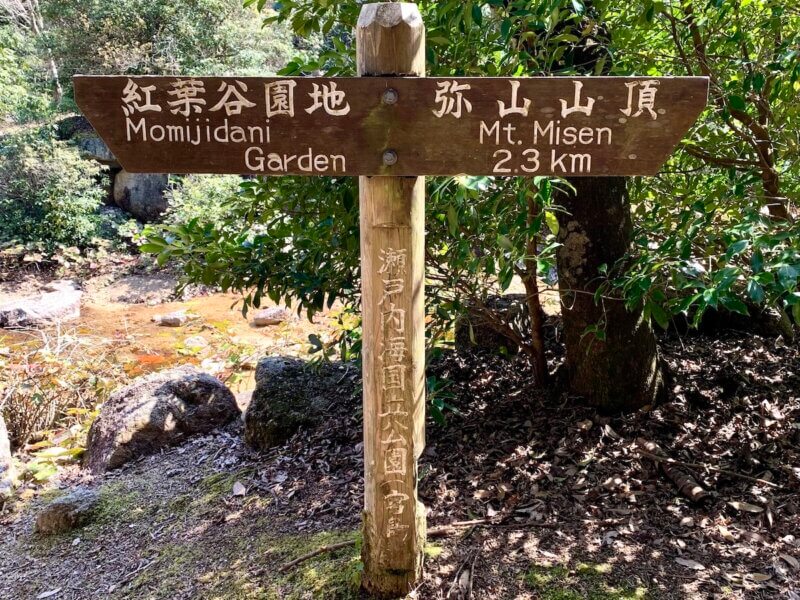 入り口すぐの場所に、弥山山頂まで2.3kmとあります