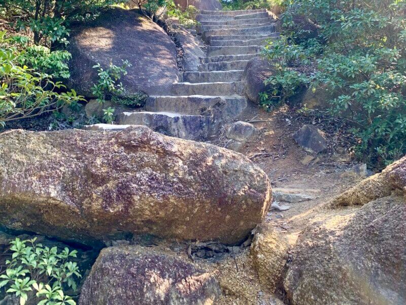 600mほど進むと徐々に石階段が出てきて勾配もキツくなってきます