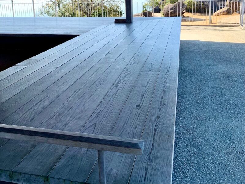 続いて階段を登って2Fの休憩スペースへ行くと、長い板が張ってあって余裕で寝転べます