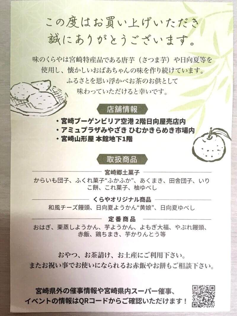 宮崎銘菓として人気の「味のくらや」さんのお菓子です
