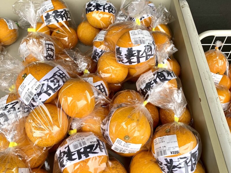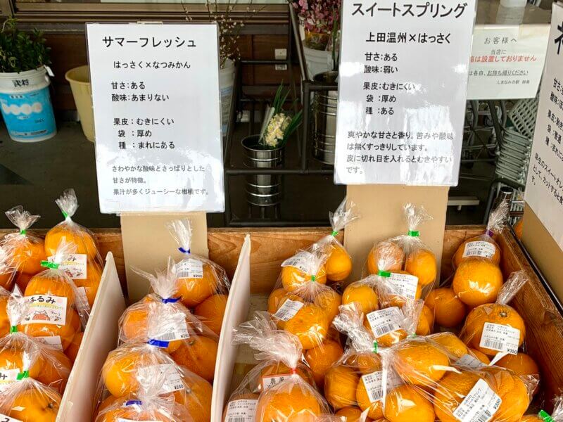 柑橘シーズンに行ったので、店前には選びきれないくらいたくさんの柑橘がありました